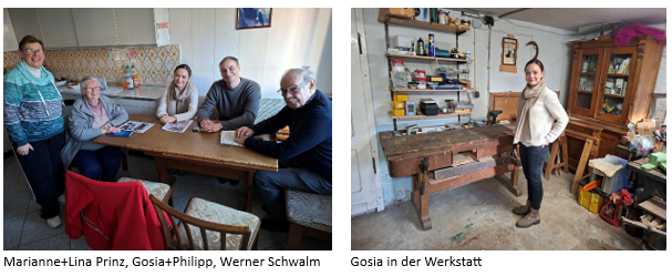 Am Vormittag des 22. November 2025 besuchte Malgorzata (Goisa) Winkler zusammen mit ihrem Ehemann Philipp die Gedenkstätte in Trutzhain. Anschließend kamen sie zusammen mit Werner Schwalm nach Wasenberg. Treffpunkt war um 12:00 Uhr im Schatteröder Weg 18 bei Heilemanns zum Mittagessen. Frei nach dem Schwälmer Spruch: „Um 12:00 Uhr wird gegessen. Egal ob es gar ist oder nicht“ erfolge danach ein reger Austausch der bisher gesammelten Informationen über Gosias Urgroßeltern ( Goisa ist der Kurzname für Malgorzata). Im Vorfeld wurden bereits Gespräche mit den Familien Prinz und Fenner geführt, in deren Anwesen die Urgroßeltern von Gosia während des 2. Weltkrieges waren und der Besuch von Gosia angekündigt.